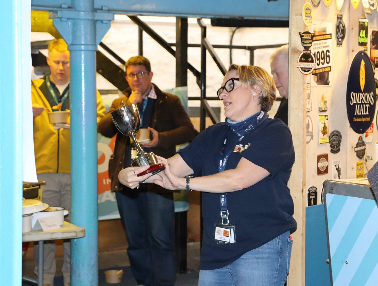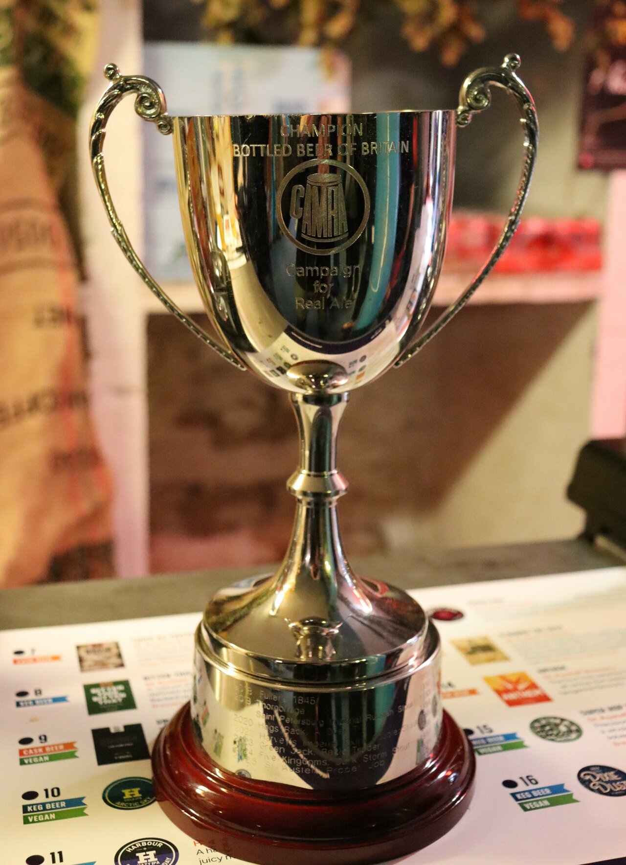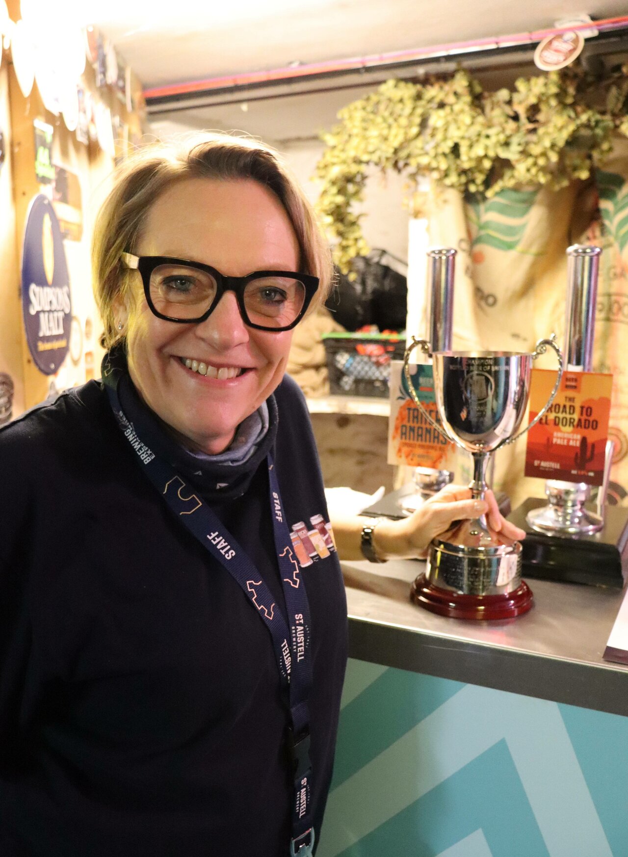 She then proudly brandished the cup awarded to St Austell Brewery by CAMRA for winning Champion Bottled Beer of Britain in 2025 for Proper Job, 5.5% ABV.